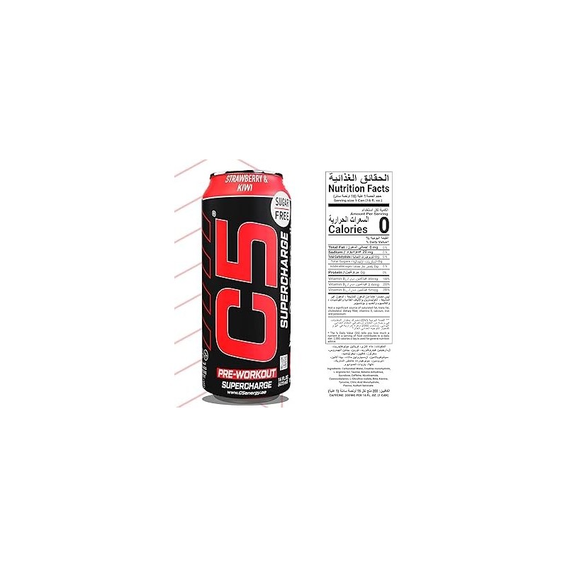 استعد لأداء رياضي قوي مع C5 Strawberry & Kiwi Supercharge، المشروب المثالي لمنحك طاقة متفجرة وتحملًا أعلى أثناء التمارين! بفضل تركيبته الفعالة، يساعدك هذا المكمل في تحسين الأداء وزيادة التركيز، مع نكهة منعشة من مزيج الفراولة الحلوة والكيوي المنعش.